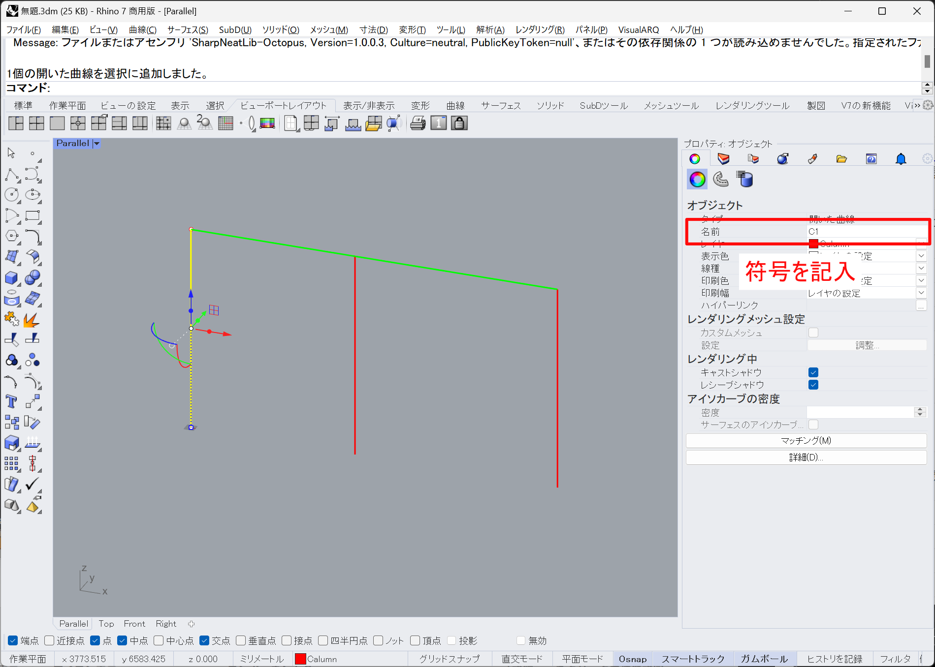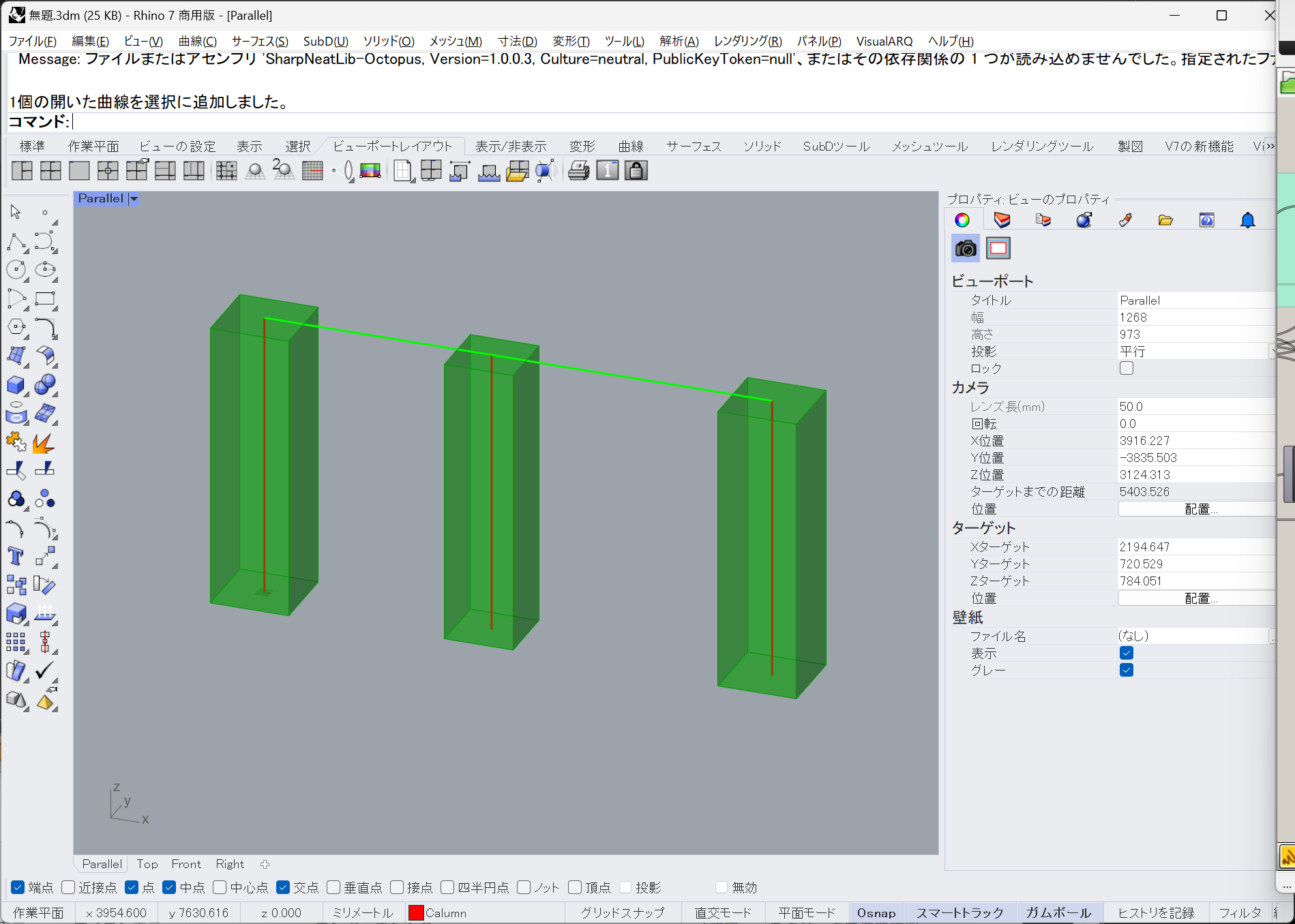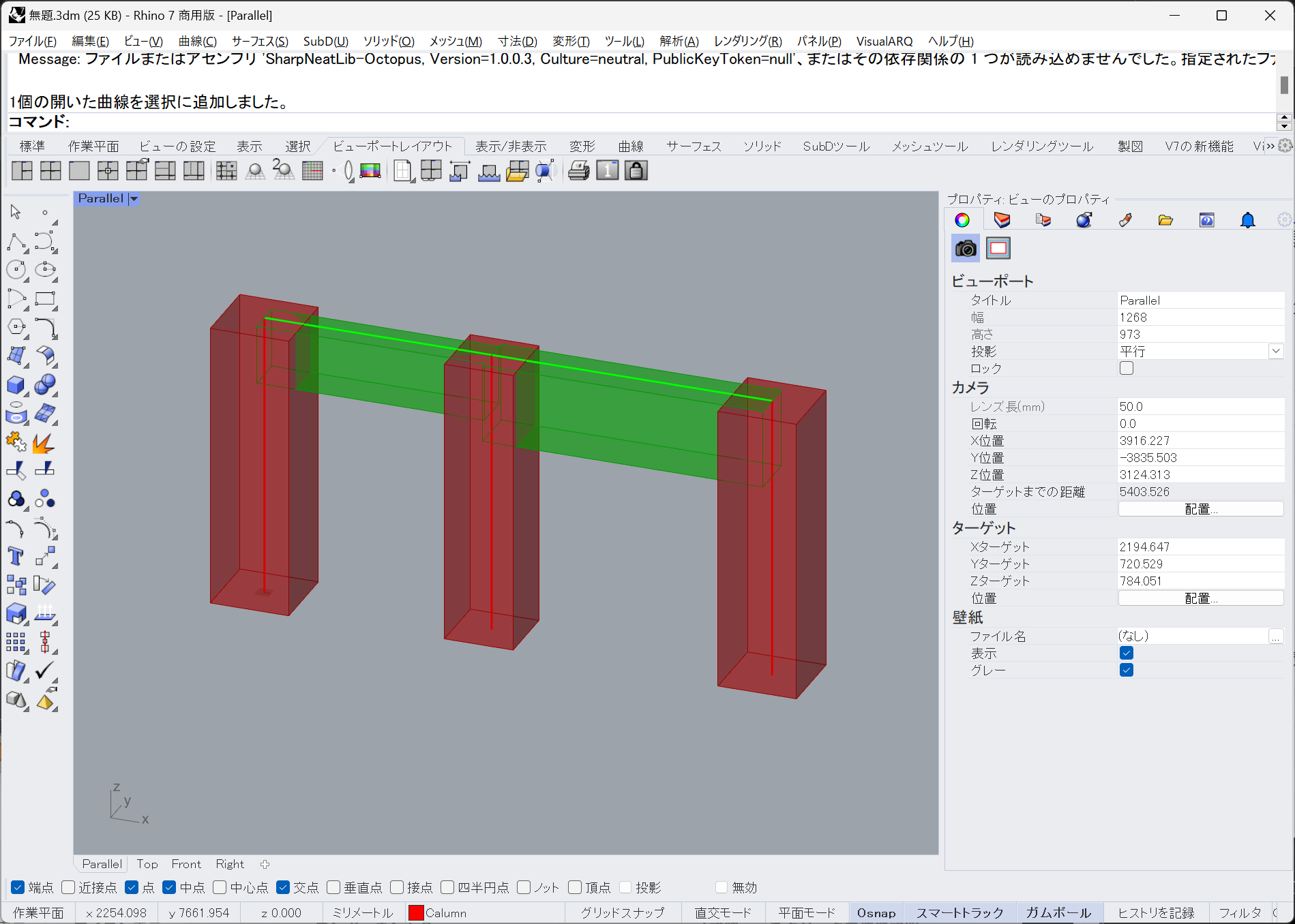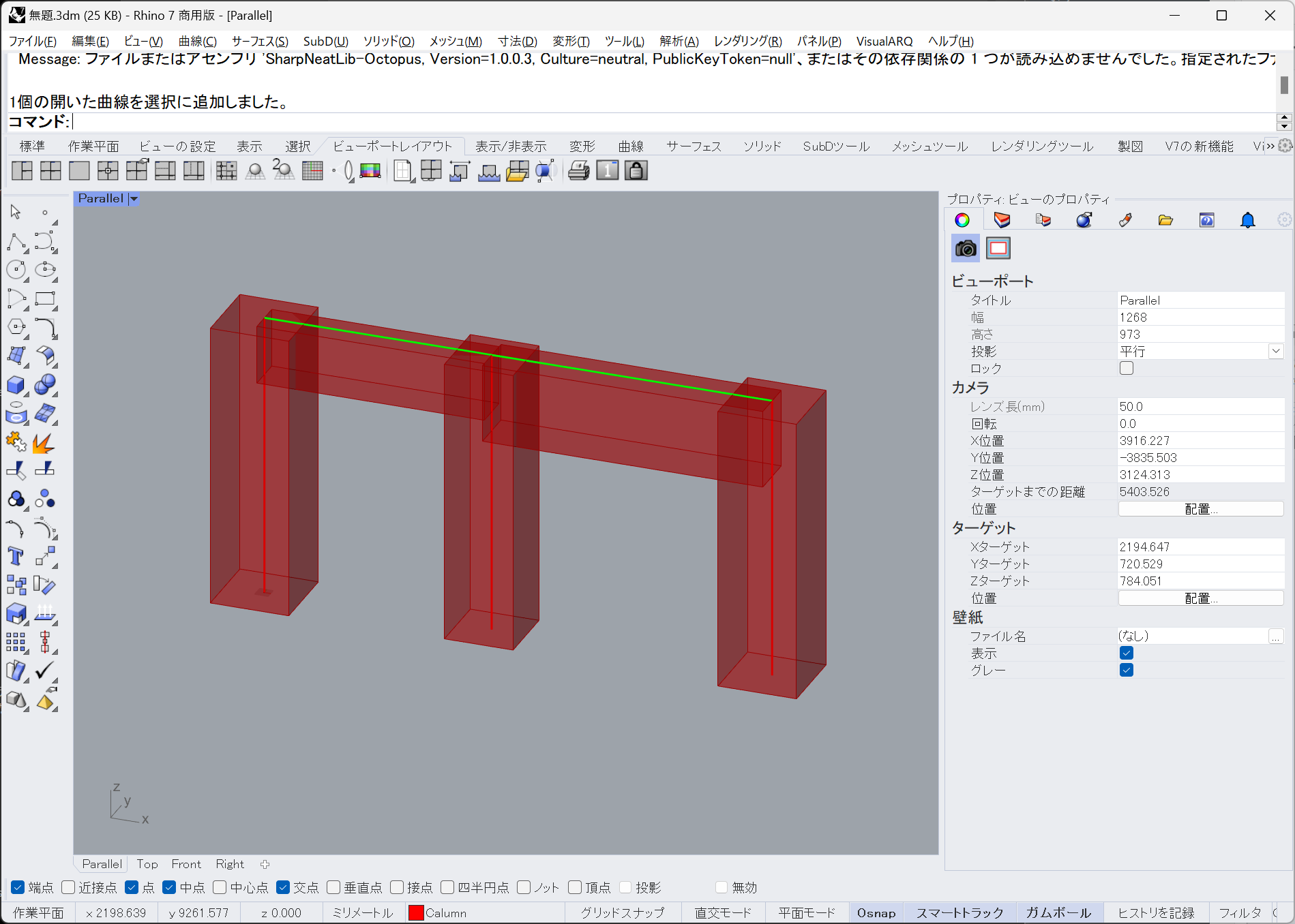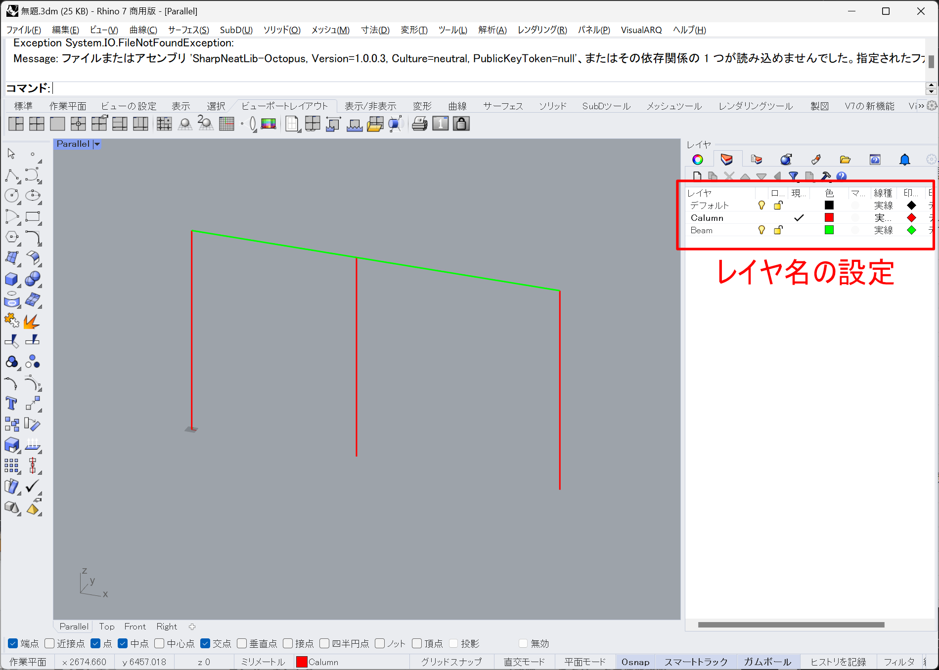 Rhino側であらかじめ柱と梁を作図しておきます。