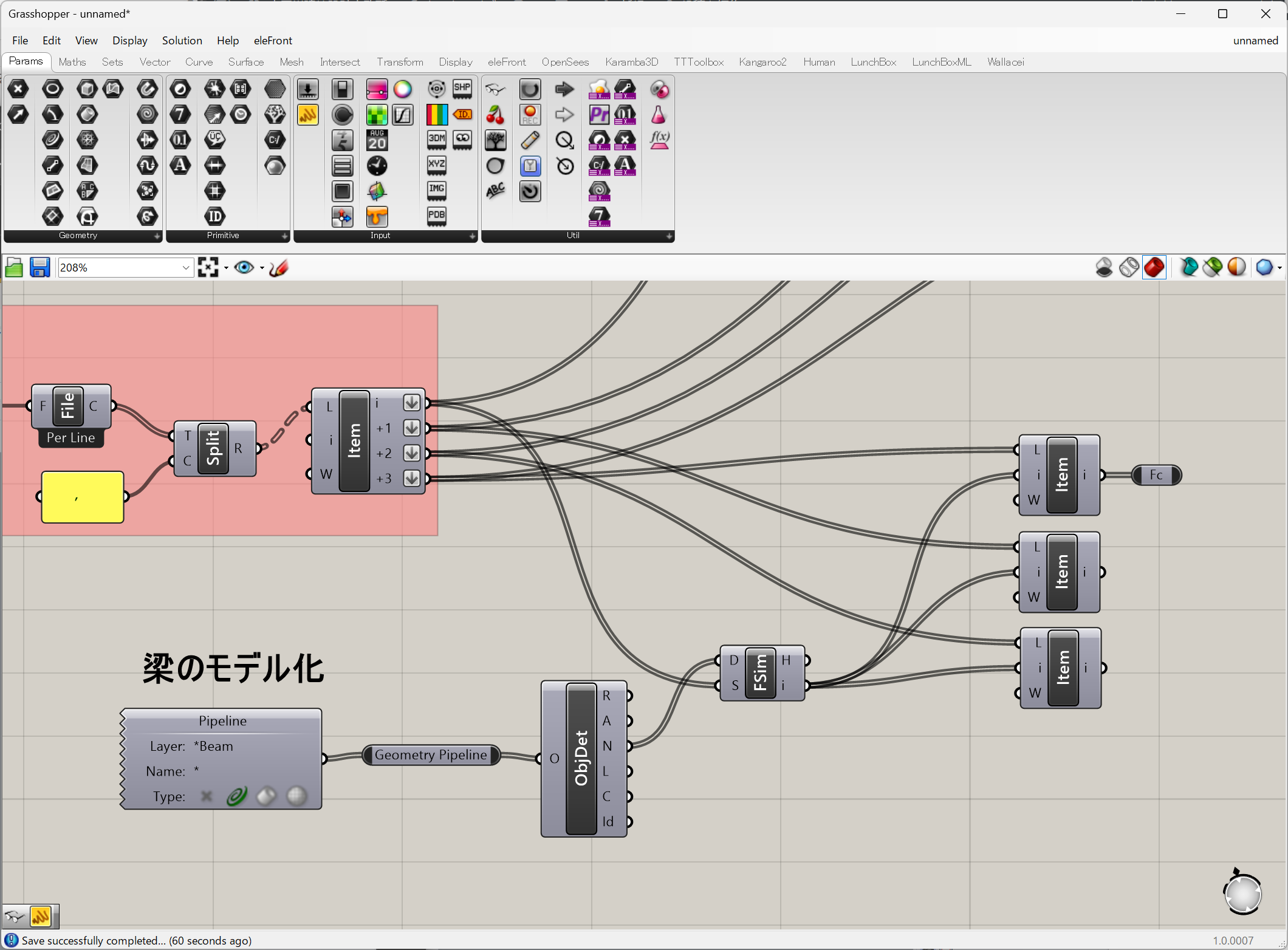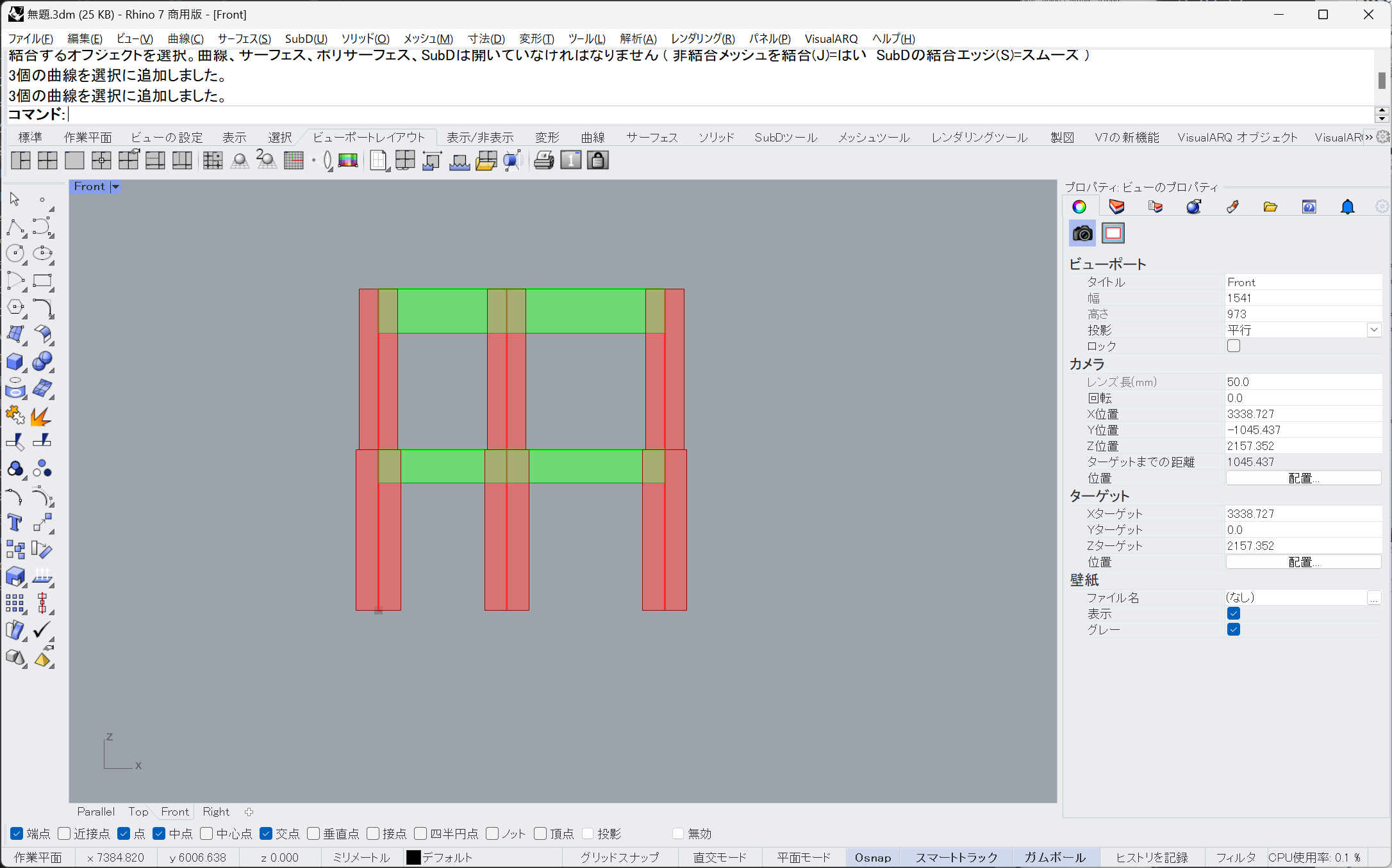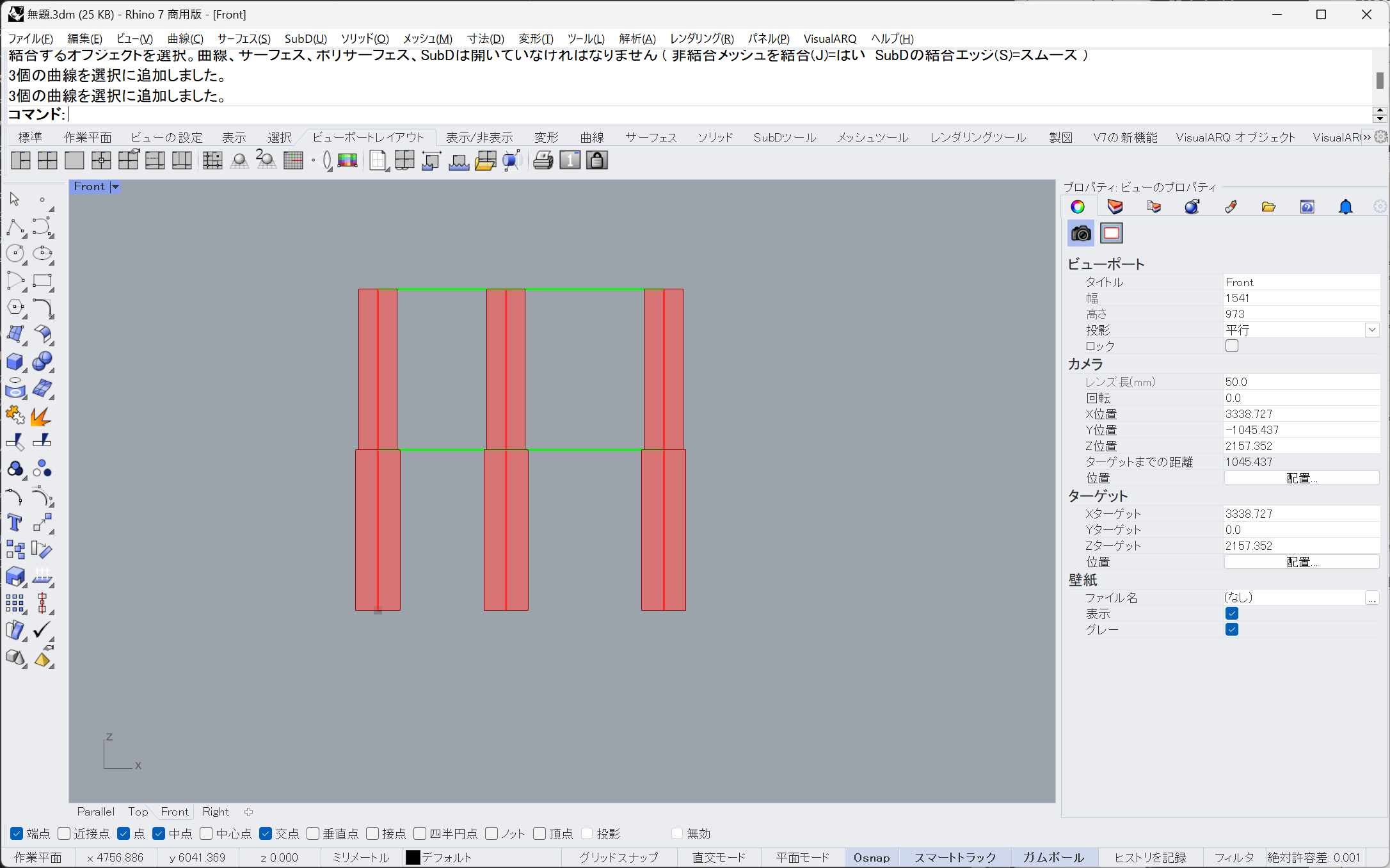 Rhino側であらかじめ柱と梁を作図しておきます。