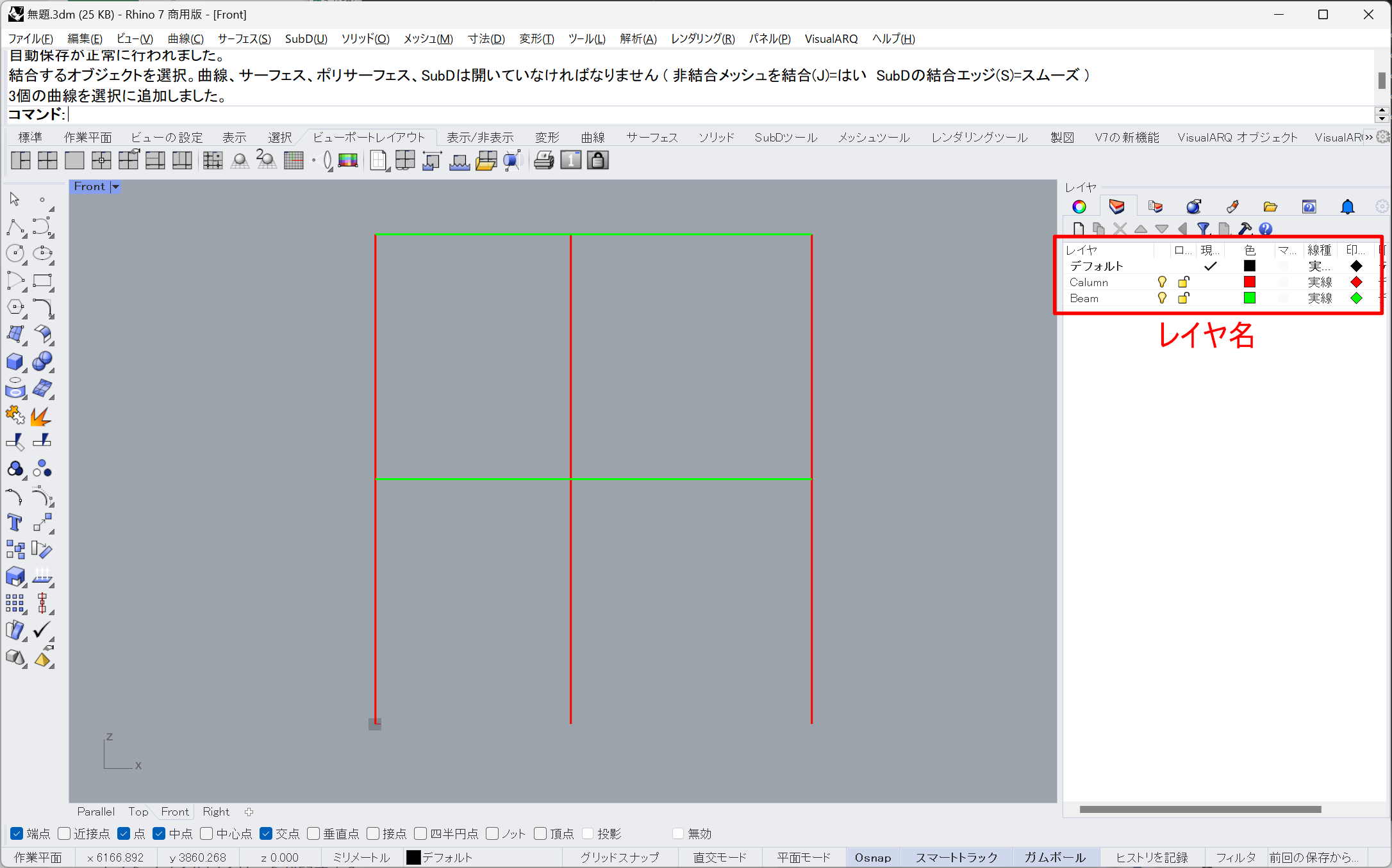 Rhino側であらかじめ柱と梁を作図しておきます。
