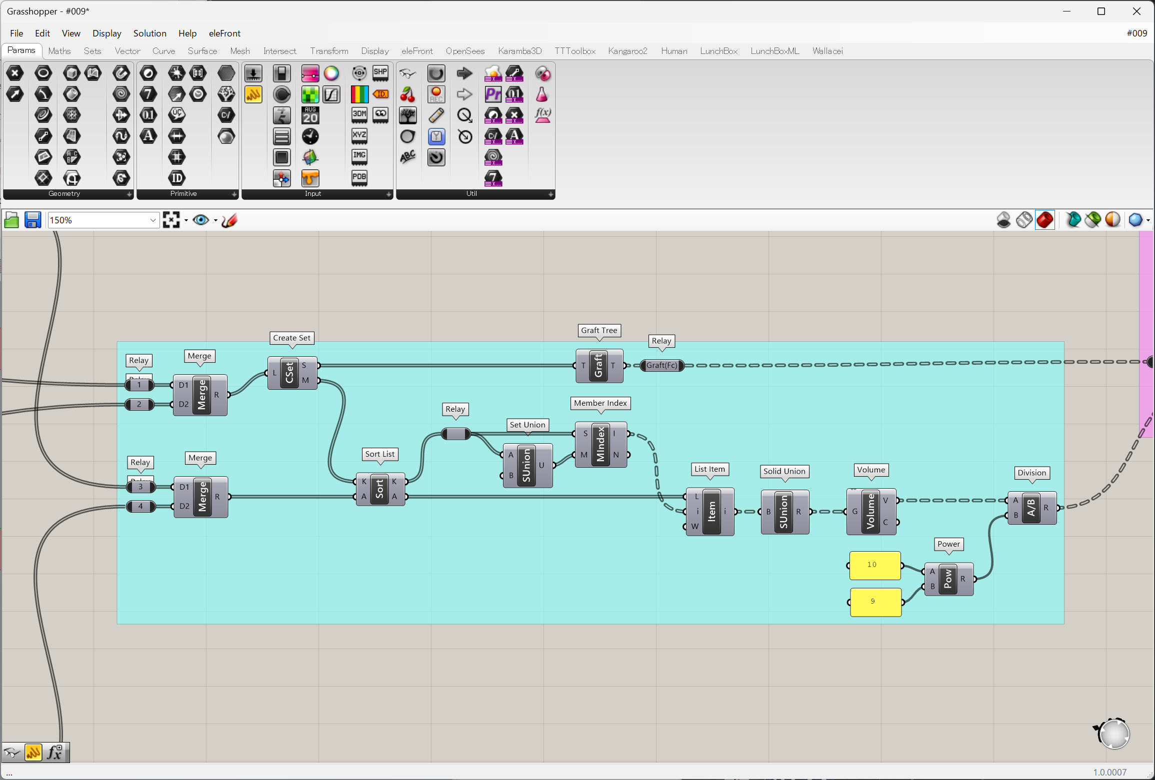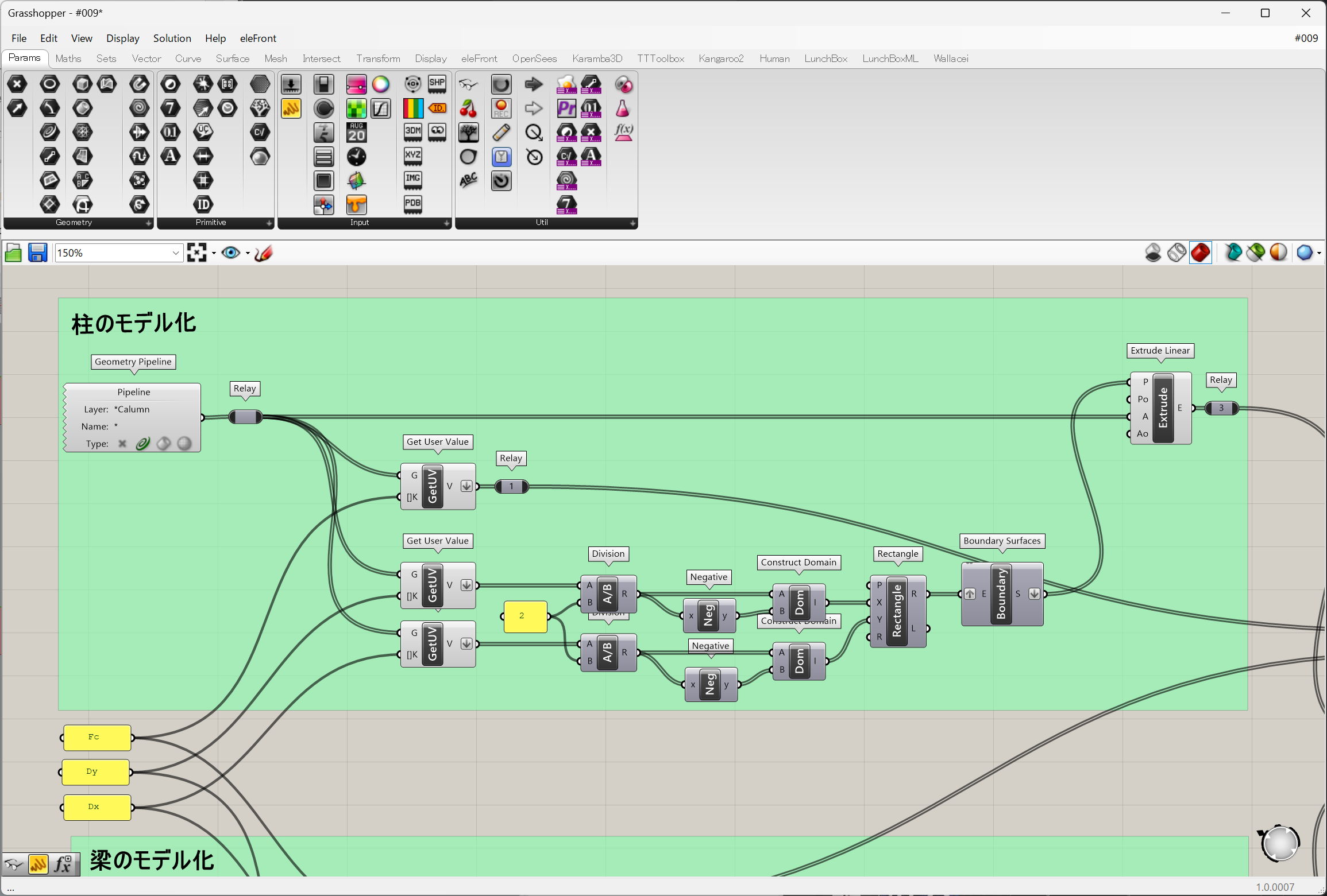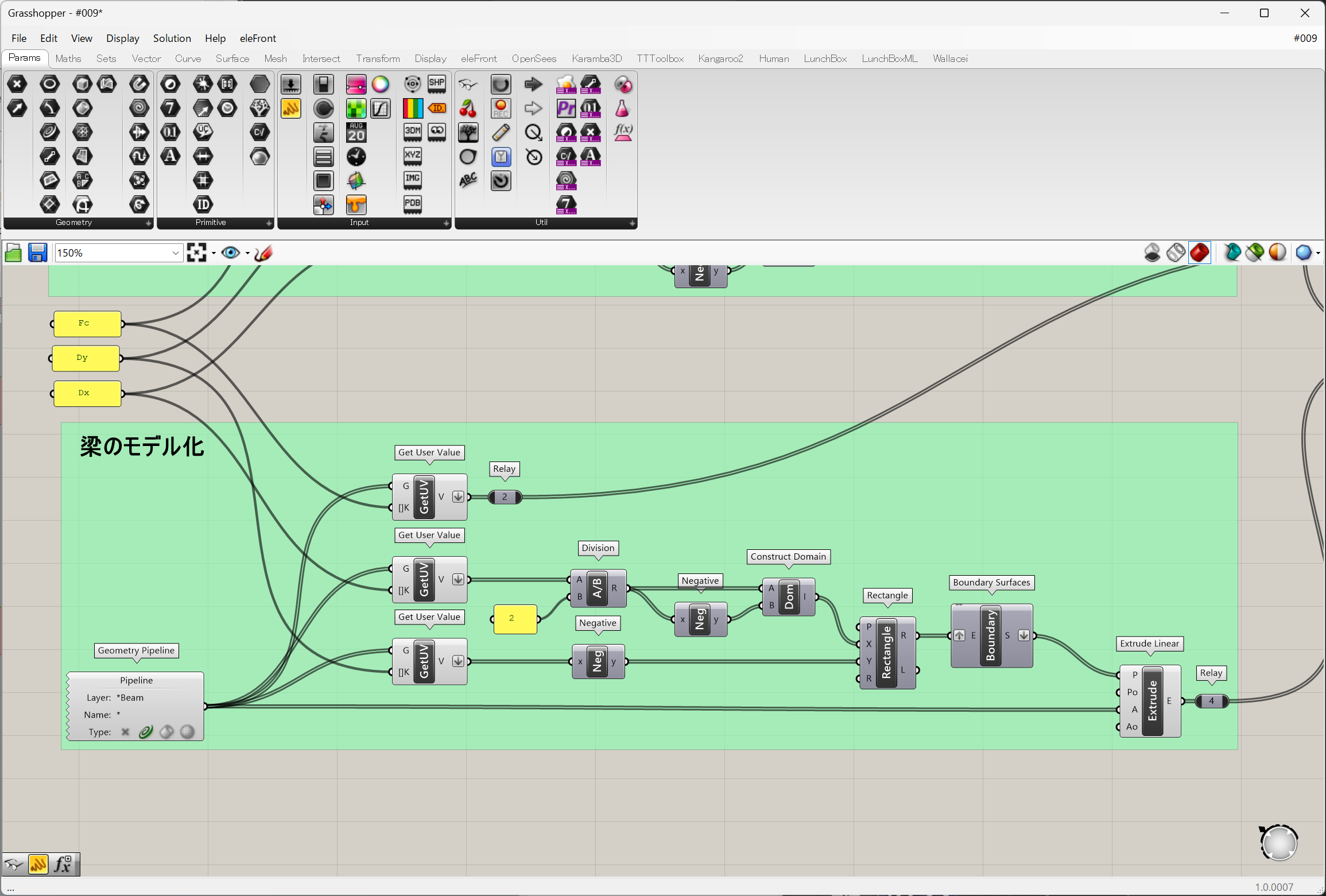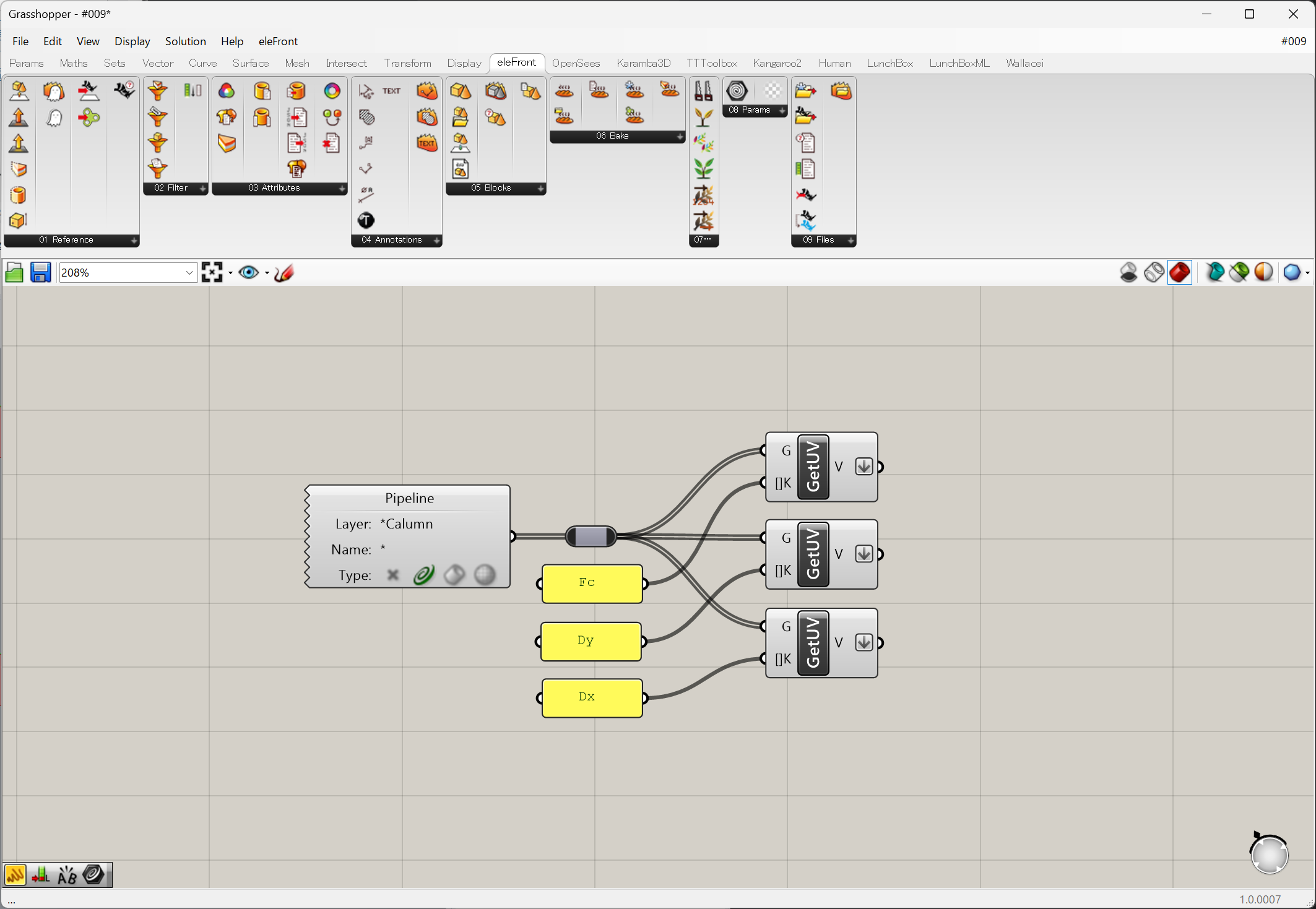 今回は「eleFront」から「Get User Value」を使ってRhinoの属性ユーザーテキストを読み込む方法を紹介しました。今回紹介した使い方は前に紹介したCSV読み込みなどで代用できますが、いろんなアプローチがあることを伝えたかったので紹介しました。